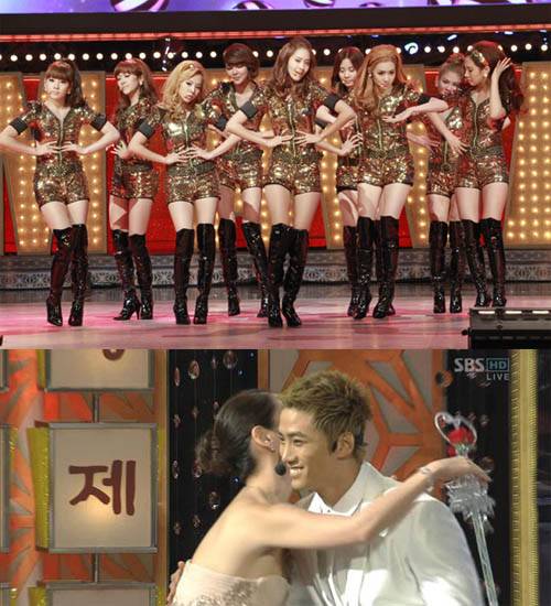 Both groups had been invited to perform congratulatory stages during the two hour long ceremony, with SNSD performing “Oh!” and “Hoot“, while 2PM did “Only You” and “I’ll Be Back.”